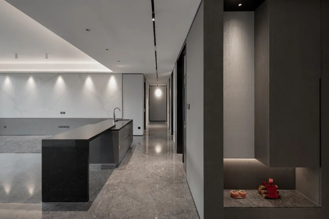 在圆明天颂高端住宅项目中,三雄极光旗下铂刻照明团队将“光健康”理念贯穿设计全程。公共区域采用约3000K的暖色温以营造居家温馨感,并应用微棱镜扩散板等防眩光技术,致力于打造无眩光干扰的舒适光环境。