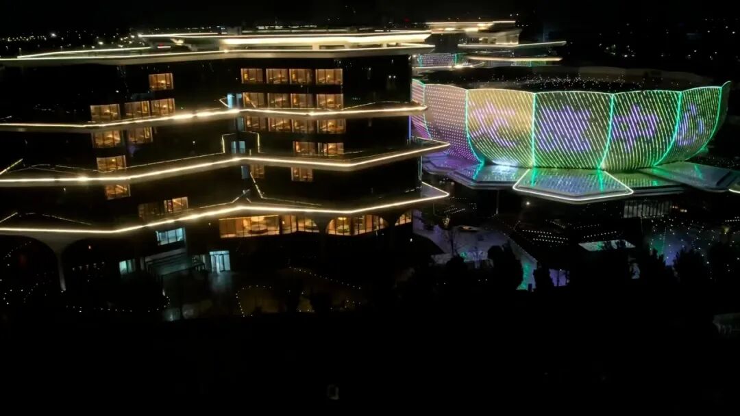 在会展中心部分,针对16个标准展厅+主登录厅+次登录厅的不同功能需求,通过精确的照度计算与灯具配比,实现完美的效果呈现。医学科学城部分则采用RGBW混光技术,通过DMX512控制系统实现外立面动态灯光效果,既展现“鹤湖星光”的诗意画面,又确保室内功能照明的专业需求。项目特别选用高效节能灯具,彰显绿色建筑理念。